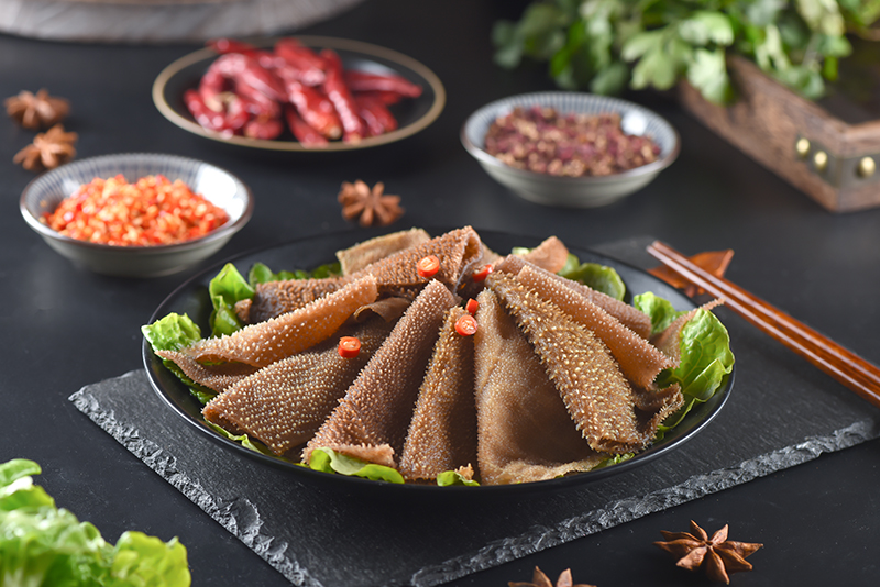 毛肚稍加涮燙就能產生脆嫩化渣的較好口感,大受窮苦纖夫歡迎,于是成為當時火鍋的主要食材,至今仍是川渝火鍋中銷量比較大的菜品之一網。毛肚除了作涮燙菜品之外,也有燒、燉、鹵、涼拌等做法,還可以加工為方便食品,吳紅棉等進行了毛肚軟罐頭的相關研究。